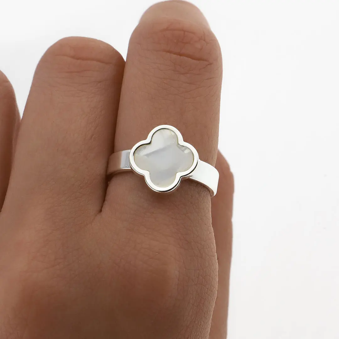 ANILLO TREBOL ACERO BLANCO