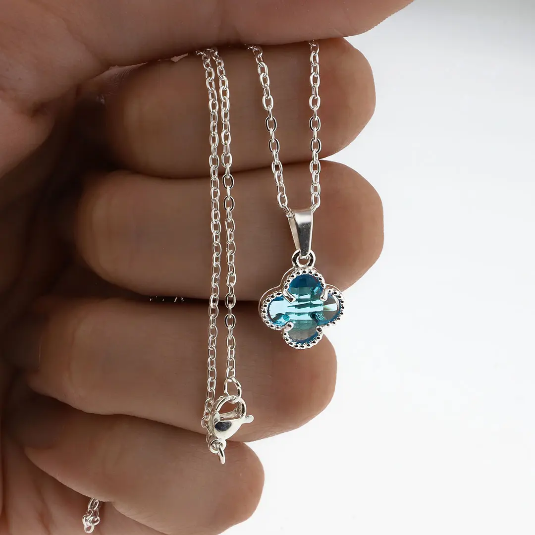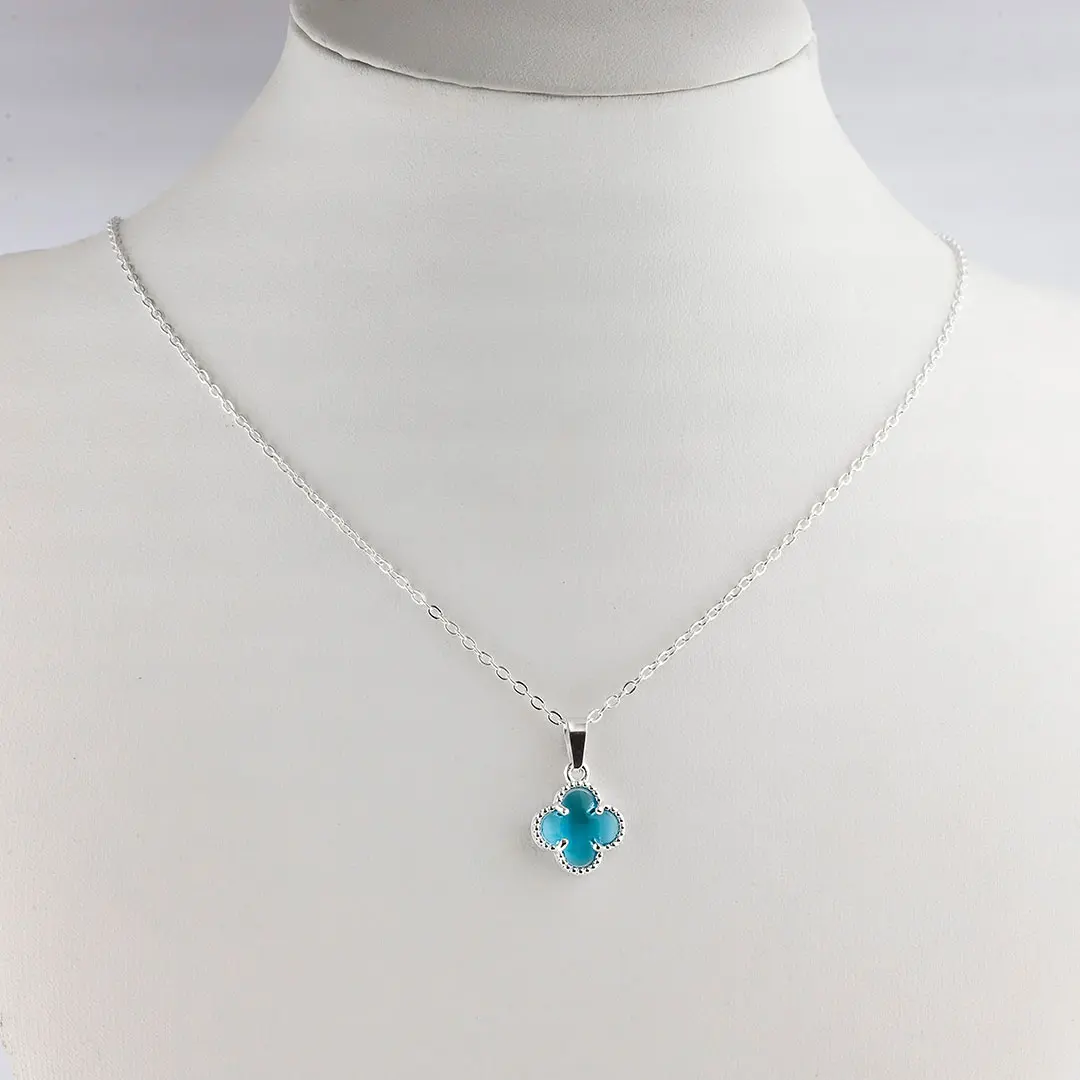 COLGANTE TREBOL CELESTE ACERO BLANCO