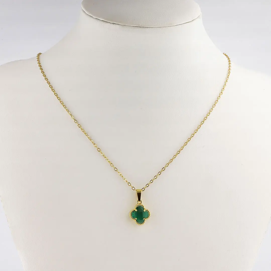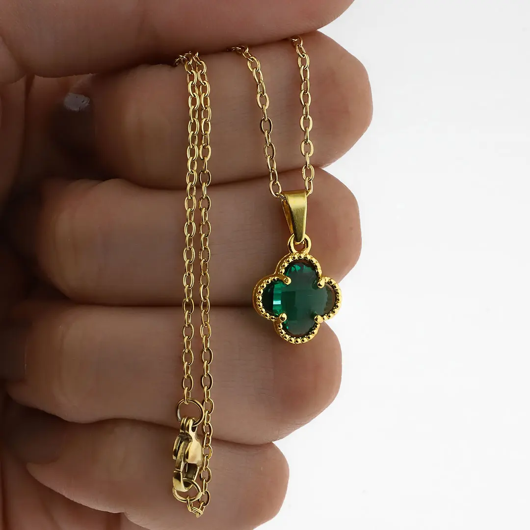 COLGANTE TREBOL VERDE ACERO DORADO