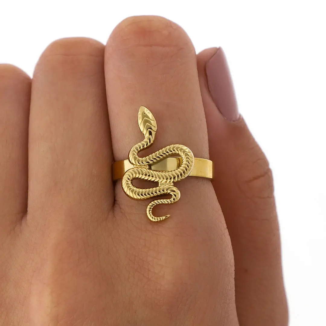 ANILLO SERPIENTE ACERO DORADO