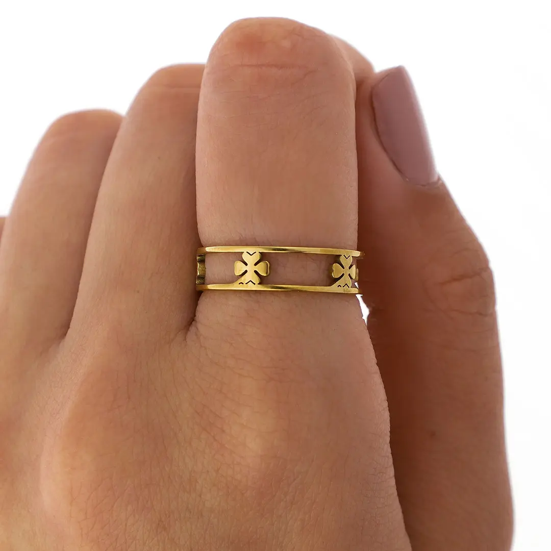 ANILLO TREBOL ACERO DORADO