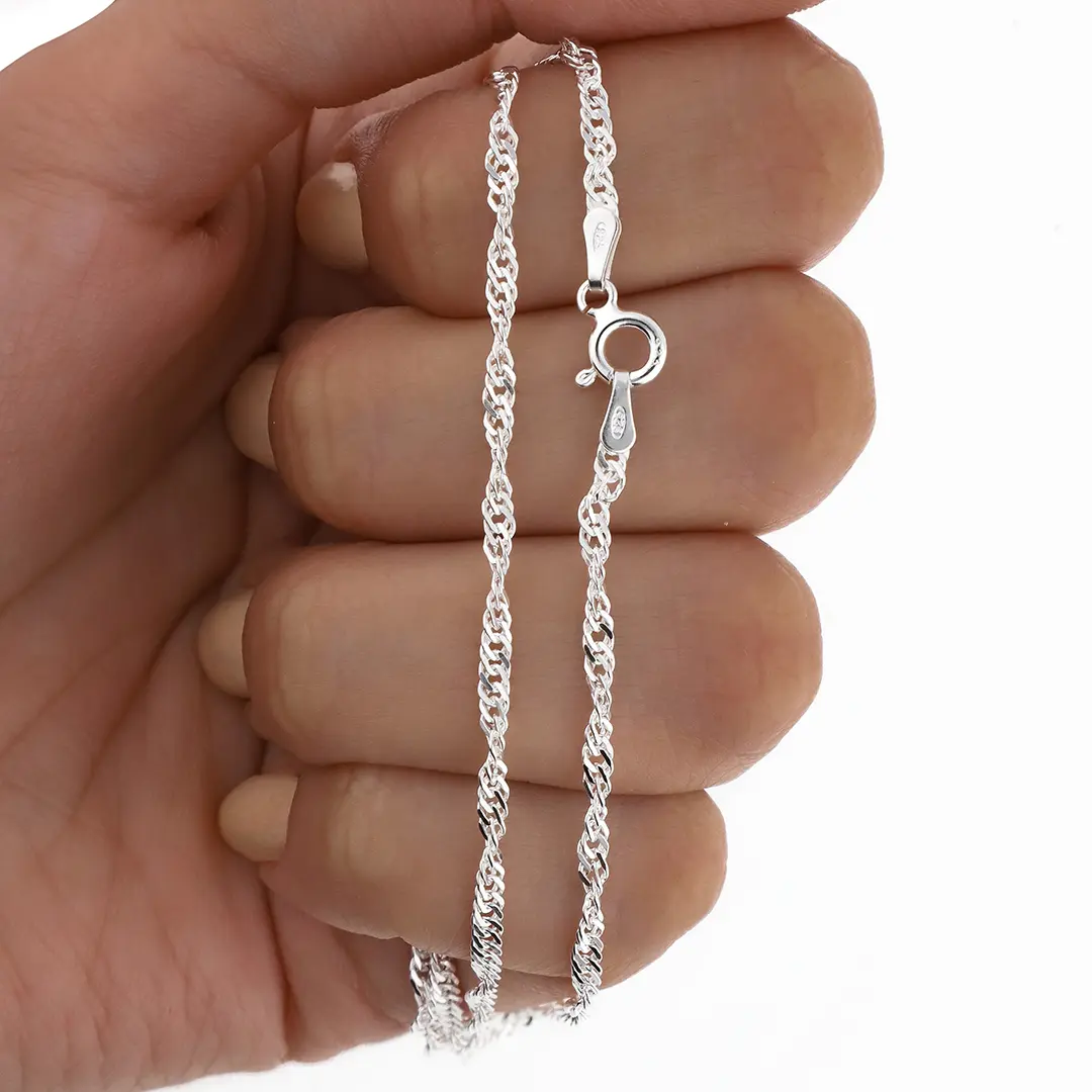 Cadenas italianas de plata 925, destacadas por su brillo, calidad y excelente terminación. Diseños clásicos y modernos, ideales para todo tipo de clientes. Producto de alta rotación con gran relación precio-calidad para reventa.
