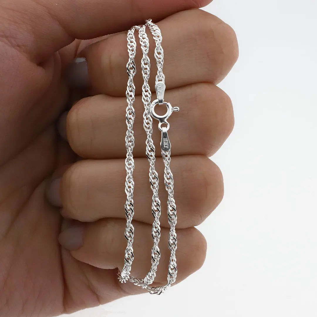 Embárcate en un viaje de elegancia exquisita con nuestras cadenas tipo 'singapur'. Cada eslabón delicadamente entrelazado captura la esencia de la sofisticación y el refinamiento. Con un brillo sutil y un diseño intrincado, estas cadenas reflejan la artesanía meticulosa y el estilo encantador. Su estructura ligera y aireada te brinda comodidad sin sacrificar el impacto visual.
